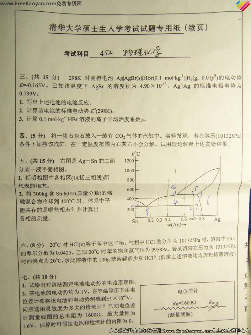 专业课考研经验 本站小编 FreeKaoyan 2018-01-22清华大学2000年考研真题-物理化学