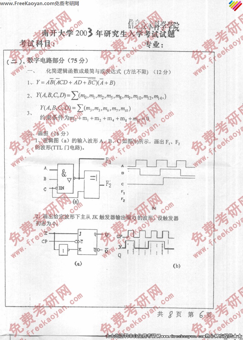 南开大学2003年考研真题-信息技术科学学院综合基础课(6)