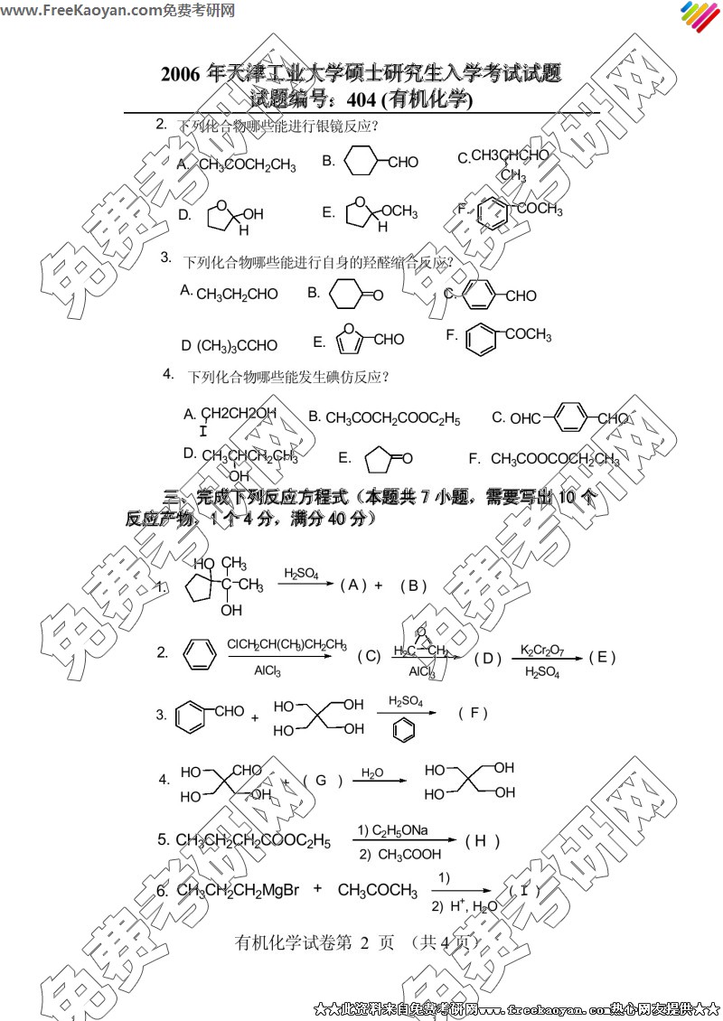 天津工业大学2006年考研真题-有机化学(404)(2)
