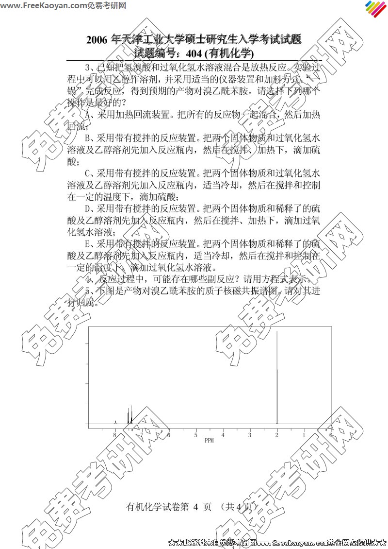 天津工业大学2006年考研真题-有机化学(404)(4)