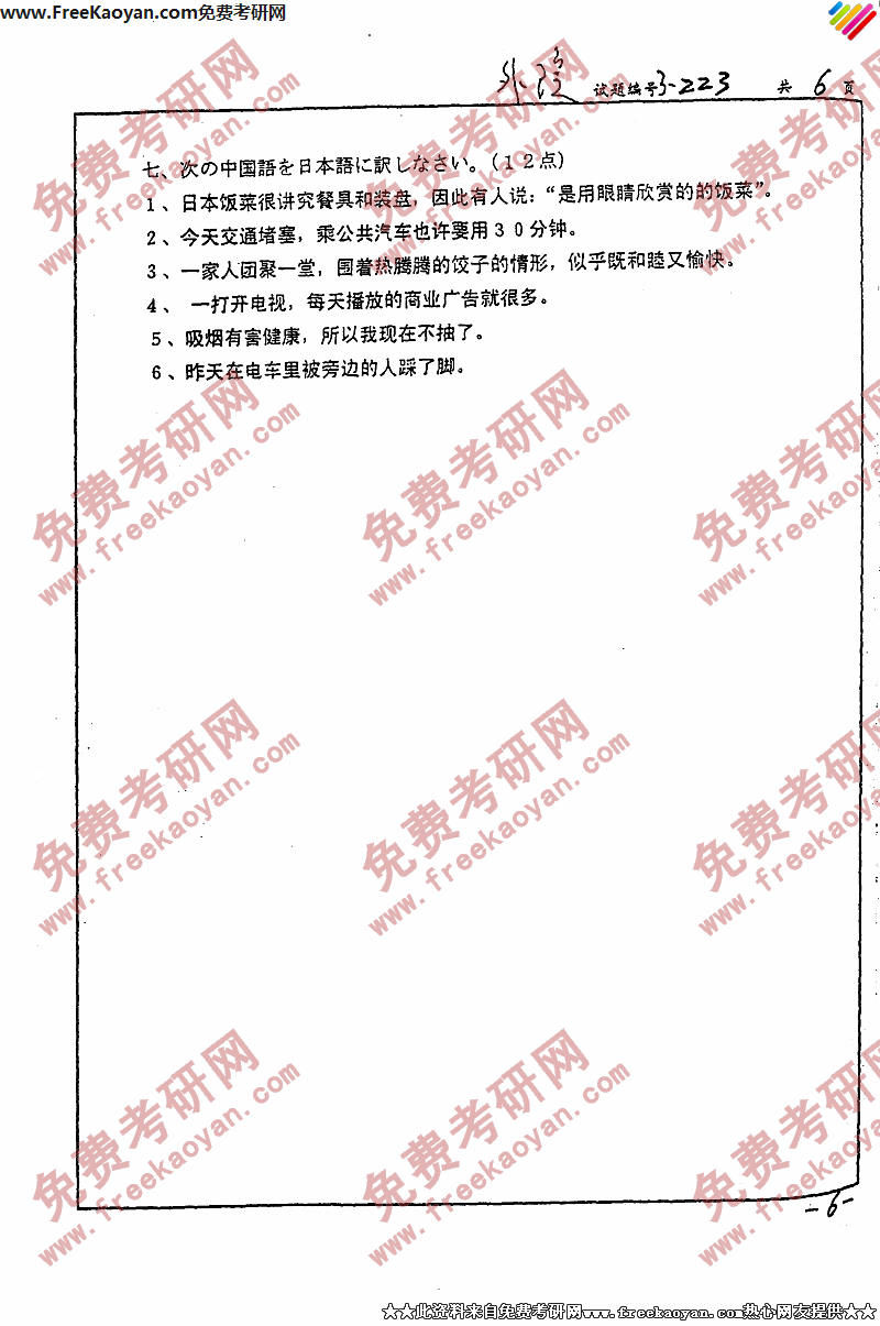 南京大学2004年考研真题-二外日语(6)
