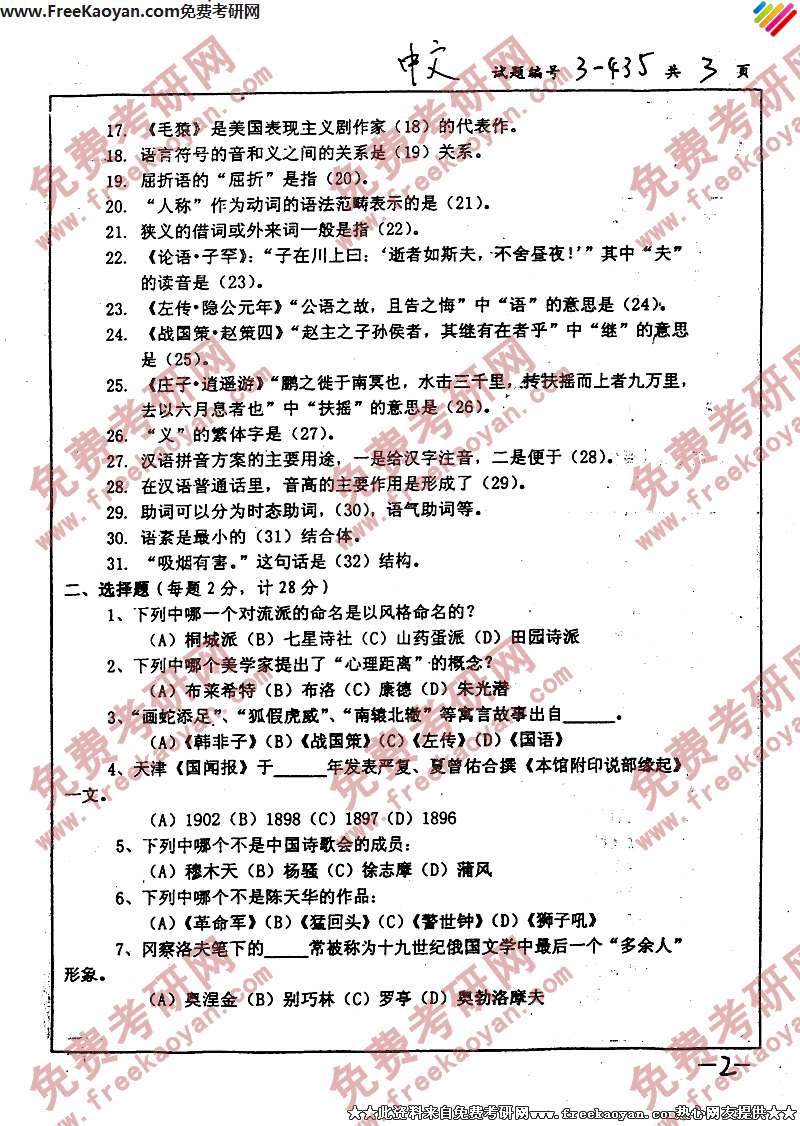 专业课考研经验 本站小编 FreeKaoyan 2018-01-23南京大学2003年考研真题-语言文学基础