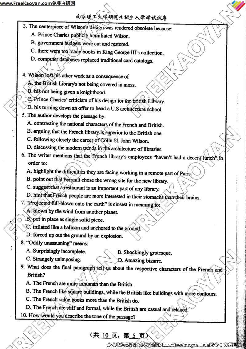 南京理工大学2004年考研真题-基础英语(5)