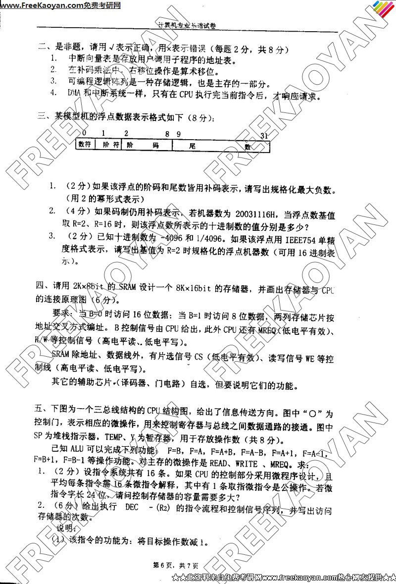 南京理工大学2004年考研真题-计算机专业基础(6)