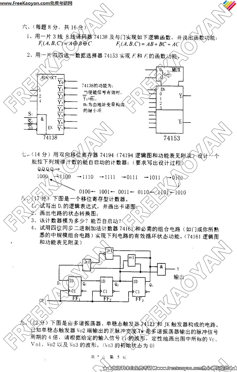 南京理工大学2005年考研真题-信号与系统、数字电路(5)