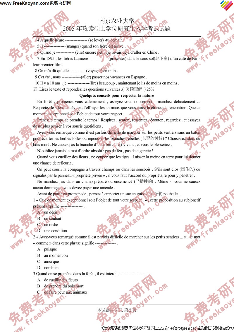 南京农业大学2005年考研真题-法语二外(2)