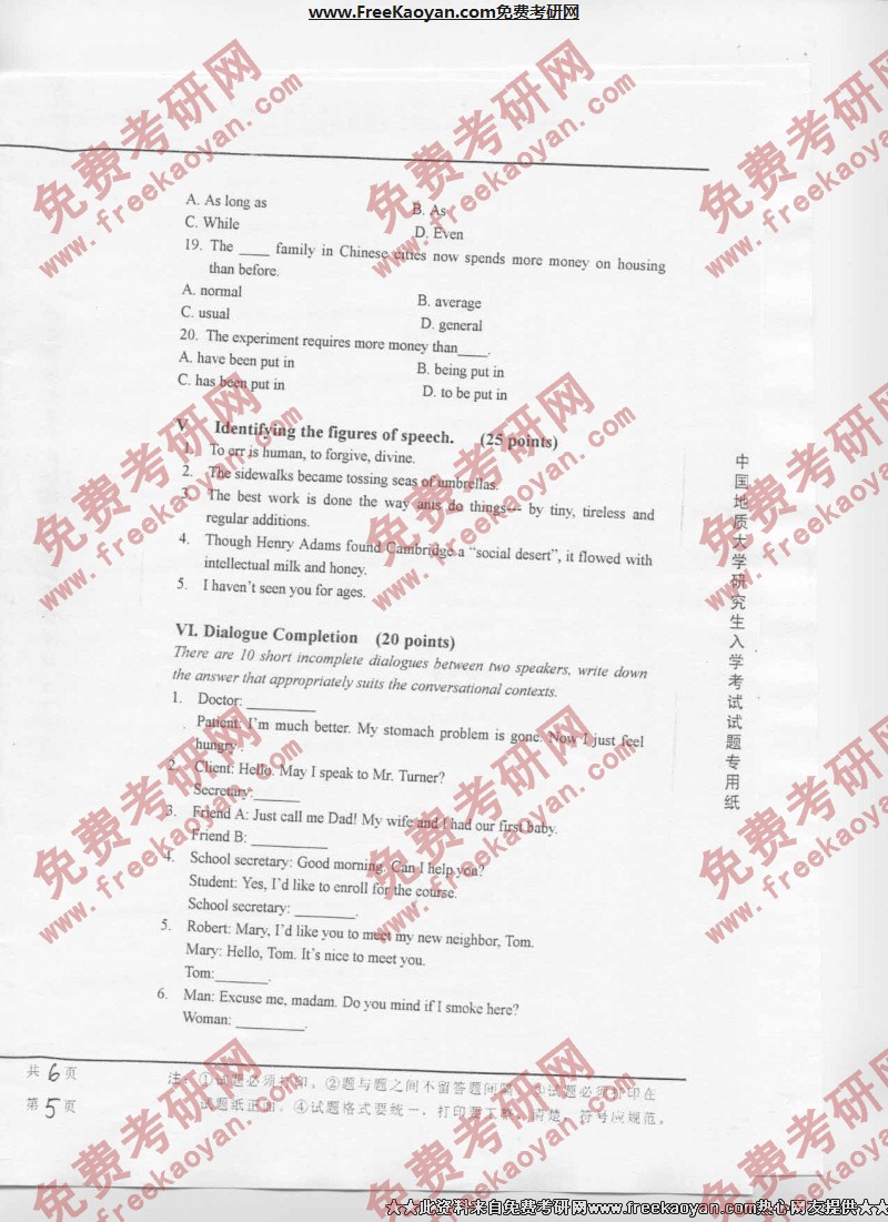 相关话题/考研真题 中国地质大学 综合考试 英语
