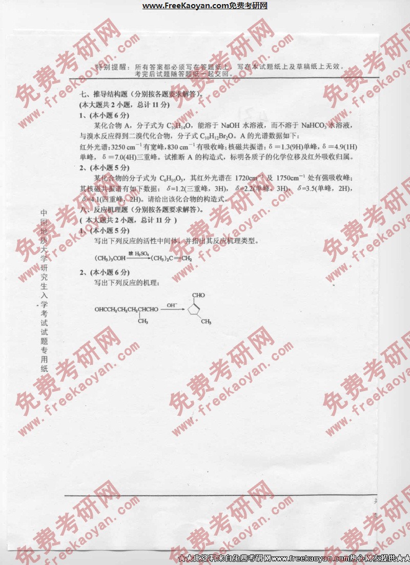 相关话题/中国地质大学 考研真题 有机化学