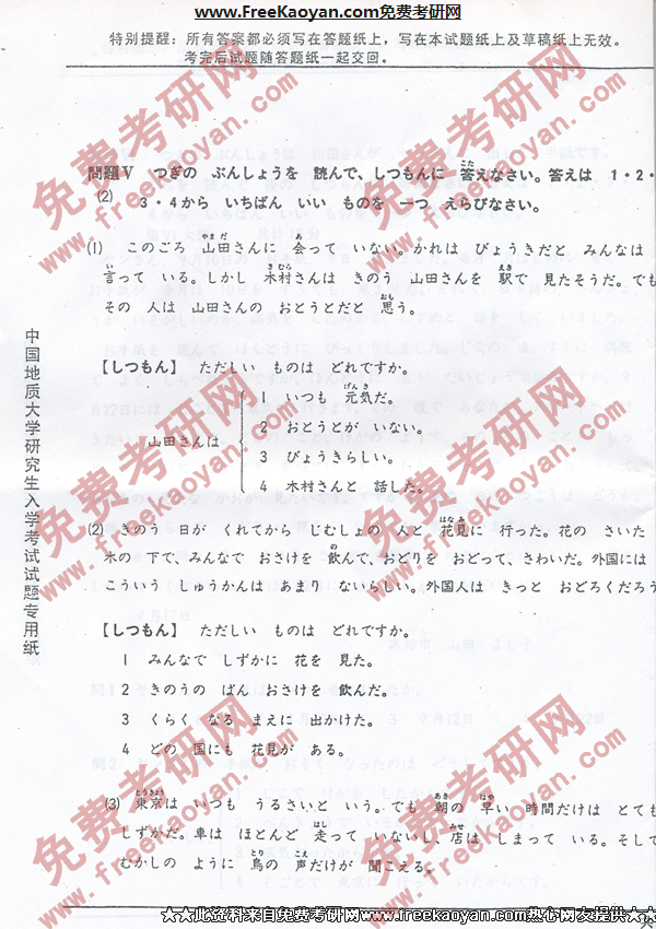 中国地质大学(武汉)2005年考研真题-日语(二外)(11)