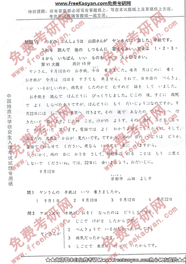 相关话题/中国地质大学 考研真题 日语