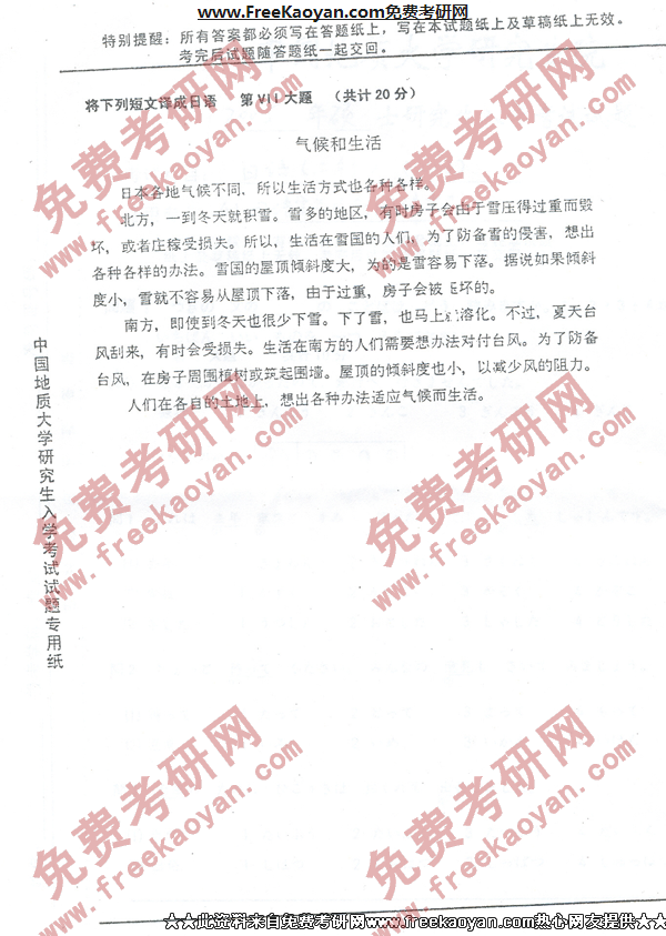 相关话题/中国地质大学 考研真题 日语
