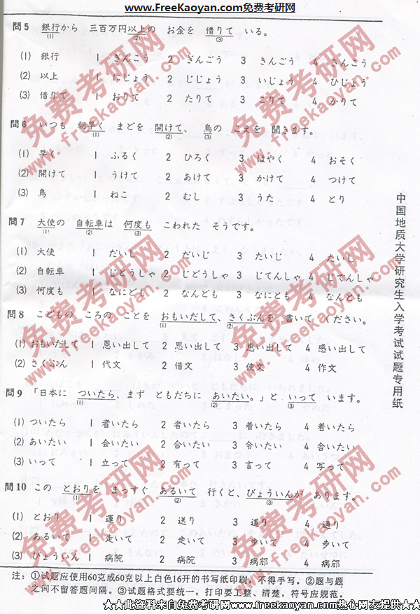 中国地质大学(武汉)2005年考研真题-日语(二外)(4)