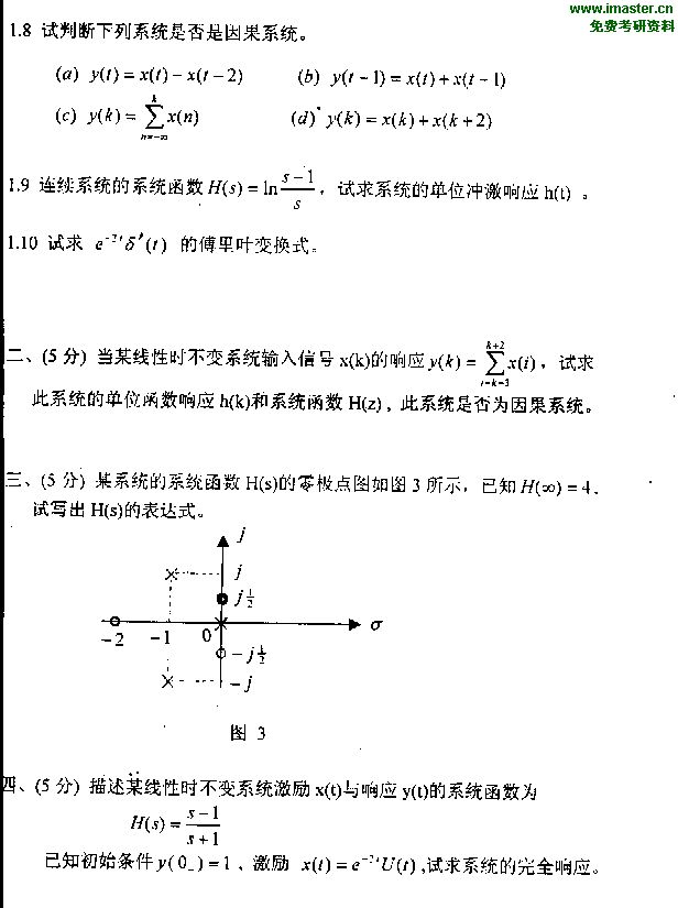 南京邮电大学1999年考研真题-信号与线性系统(2)