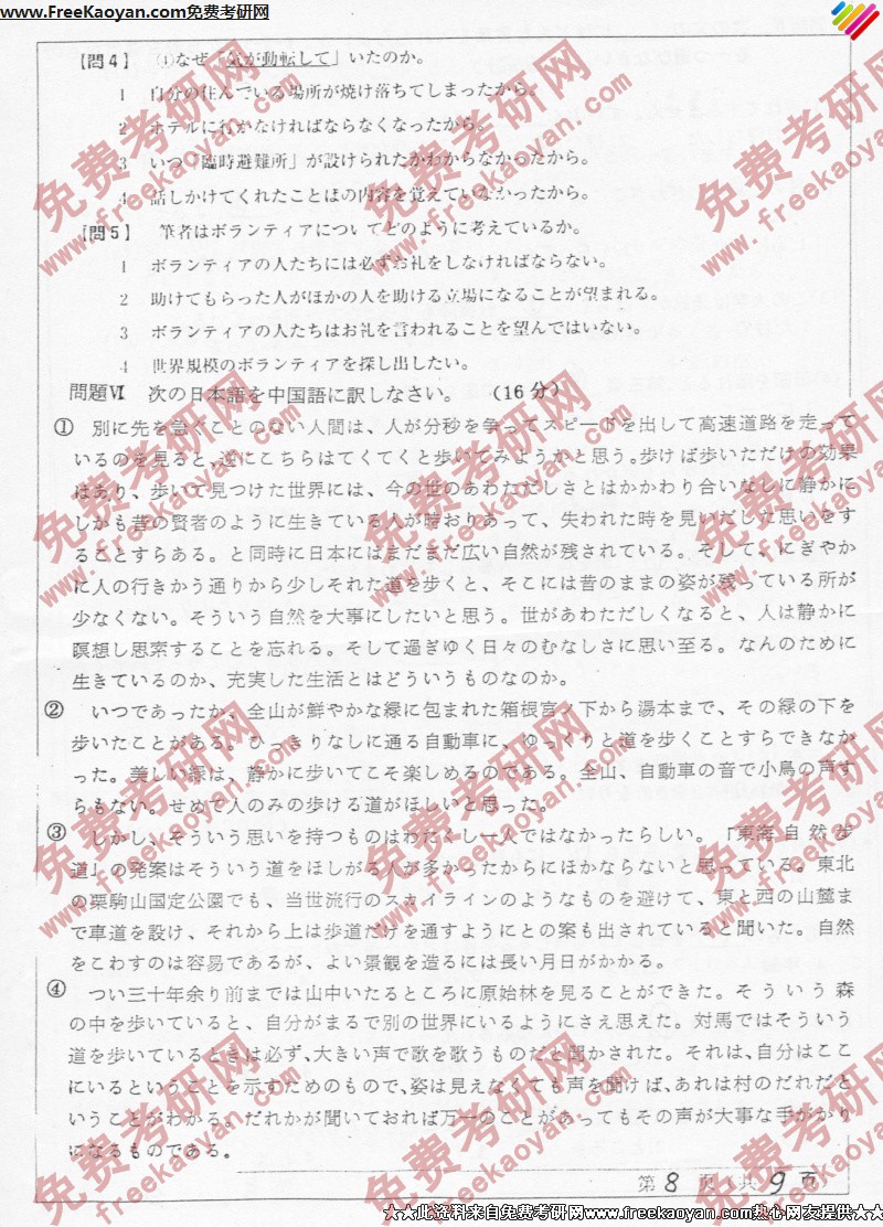 专业课考研经验 本站小编 FreeKaoyan 2018-01-23山东师范大学2005年考研真题-二外日语
