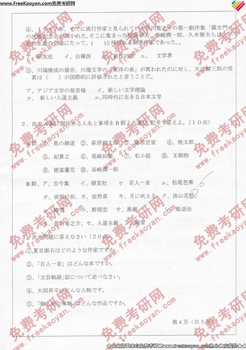 山东师范大学2005年考研真题-综合考试B(4)