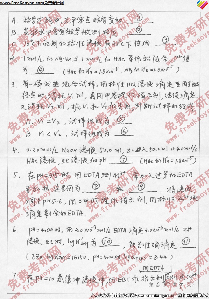 山东师范大学2006年考研真题-分析化学(6)