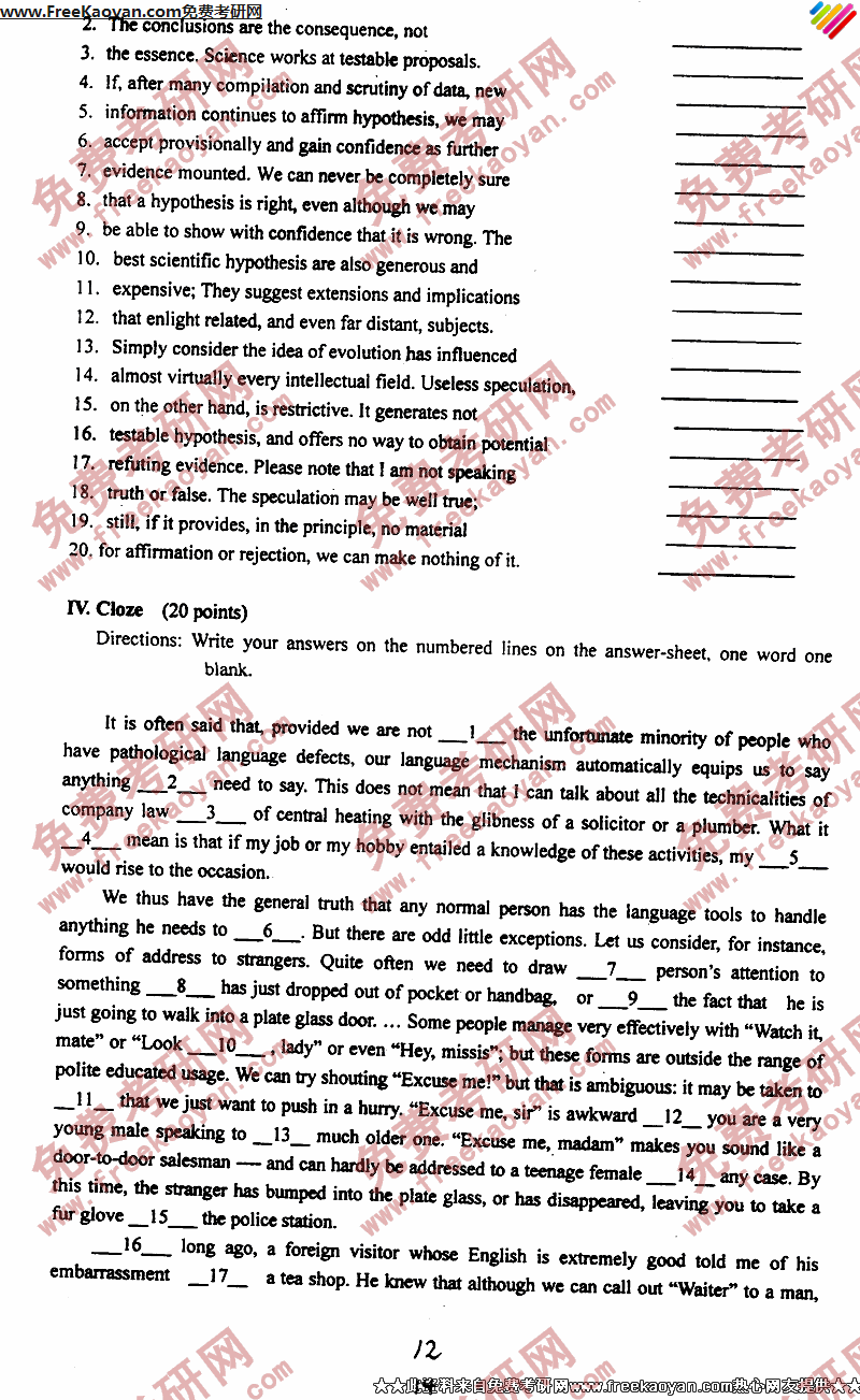 苏州大学2004年考研真题-基础英语(12)