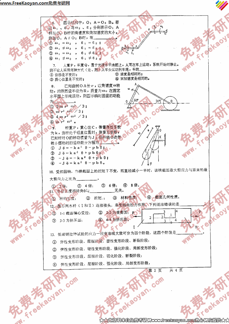 相关话题/浙江工业大学 考研真题 工程力学