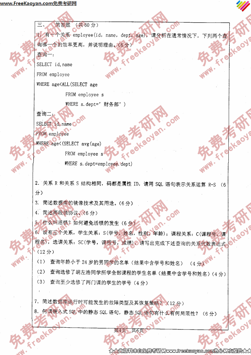 浙江工业大学2006年考研真题-数据库原理(4)