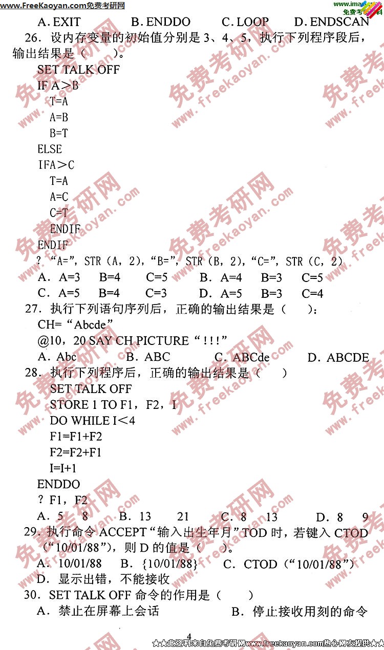 专业课考研经验 本站小编 FreeKaoyan 2018-01-23华中师范大学2000年考研真题-计算机科学系综合考试