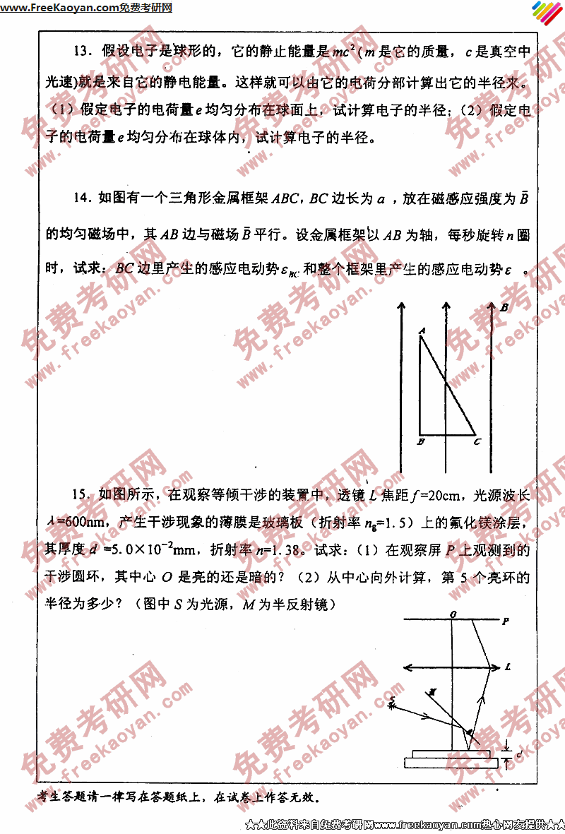 专业课考研经验 本站小编 FreeKaoyan 2018-01-23华中师范大学2005年考研真题-普通物理学(二)