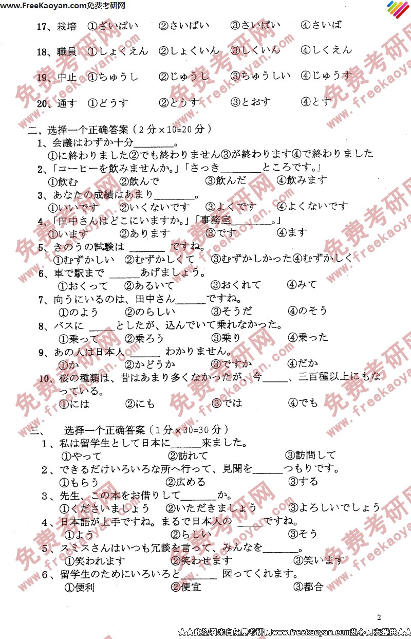 华中师范大学2006年考研真题-二外日语(2)