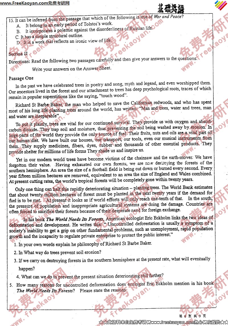 专业课考研经验 本站小编 FreeKaoyan 2018-01-23南开大学2004年考研真题-基础英语