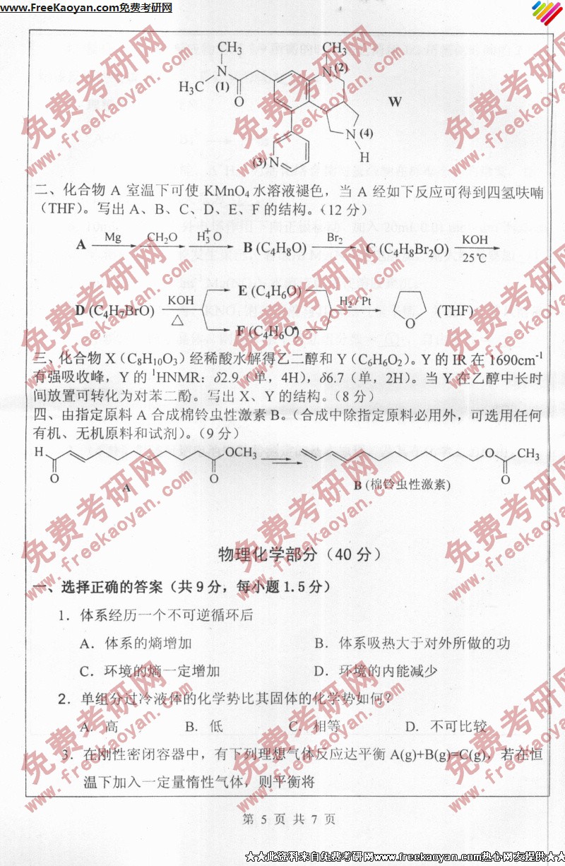 专业课考研经验 本站小编 FreeKaoyan 2018-01-23南开大学2005年考研真题-有机化学