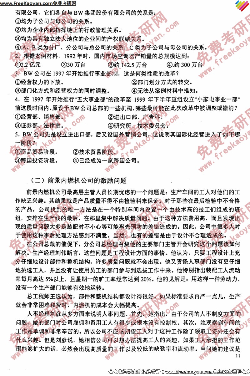 西安交通大学2005年考研真题-管理学(11)