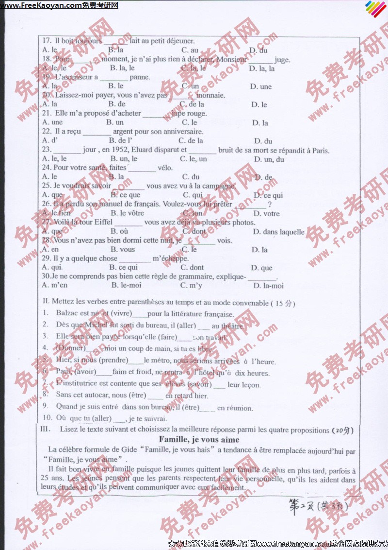 山东师范大学2007年考研真题-法语(2)