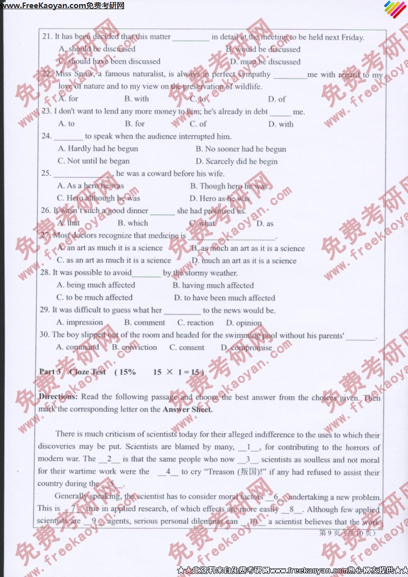 专业课考研经验 本站小编 FreeKaoyan 2018-01-23山东师范大学2007年考研真题-数字电视技术与写作