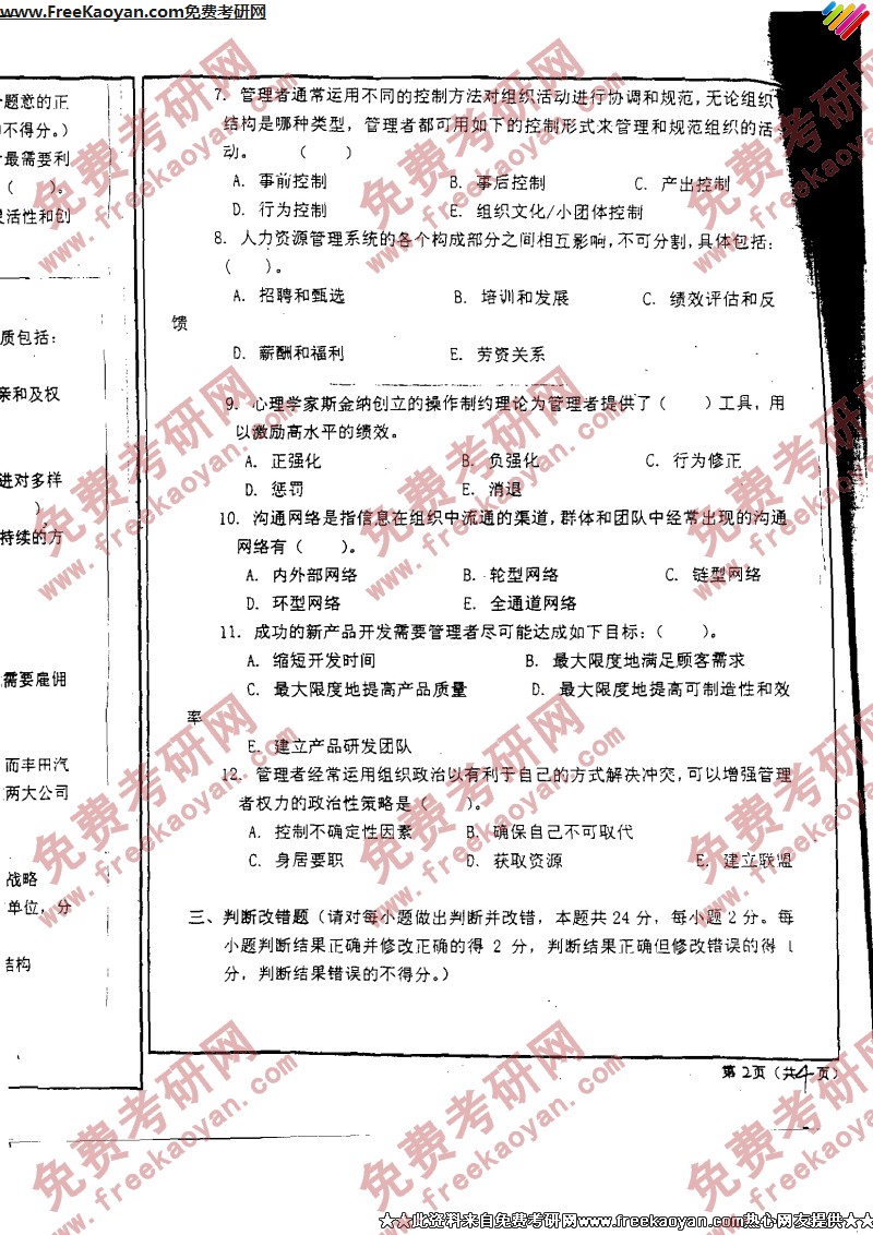 西安交通大学2006年考研真题-管理学基础(4)