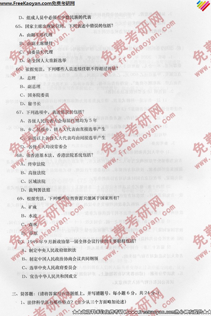 专业课考研经验 本站小编 FreeKaoyan 2018-01-23中国政法大学2004年考研真题-国际公法、宪法学、民法学