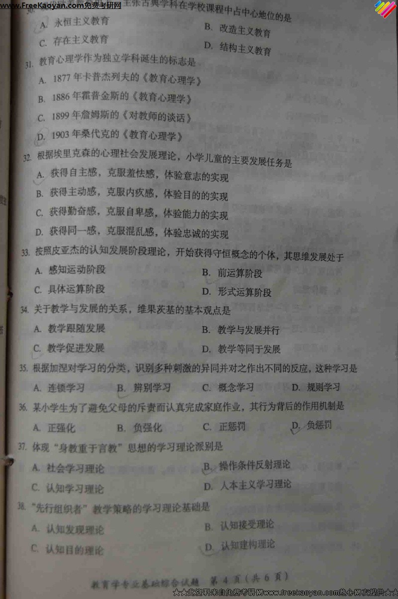 专业课考研经验 本站小编 FreeKaoyan 2018-01-23河北大学2007年考研真题-教与学的基本理论