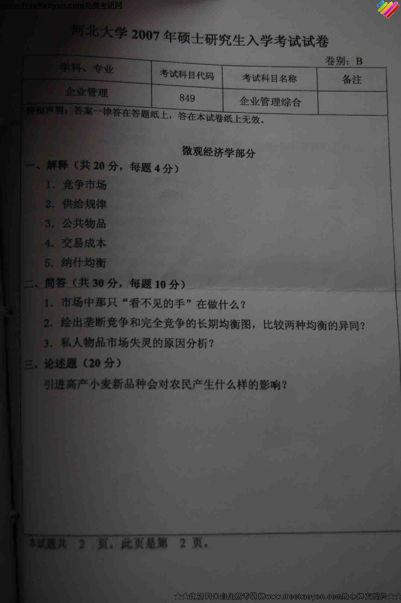 专业课考研经验 本站小编 FreeKaoyan 2018-01-23河北大学2007年考研真题-公共管理学(单考)