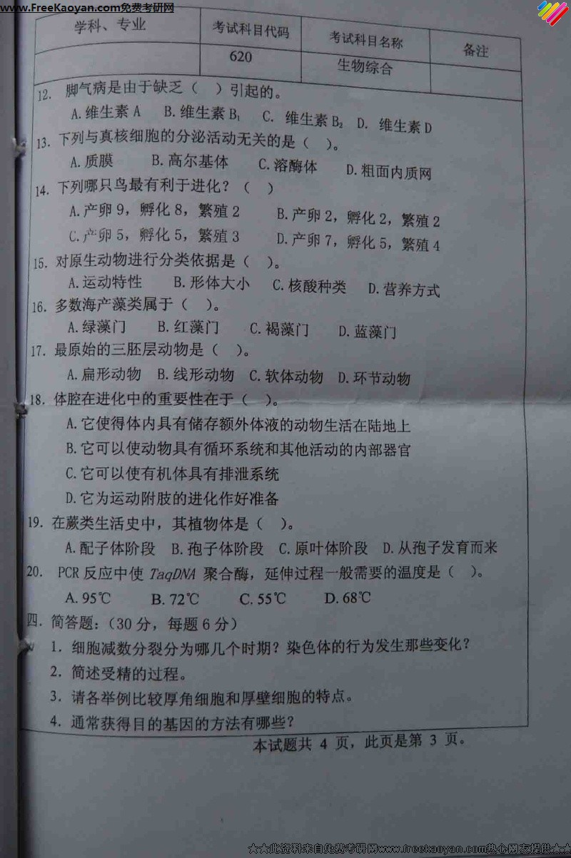 专业课考研经验 本站小编 FreeKaoyan 2018-01-23河北大学2007年考研真题-生态学