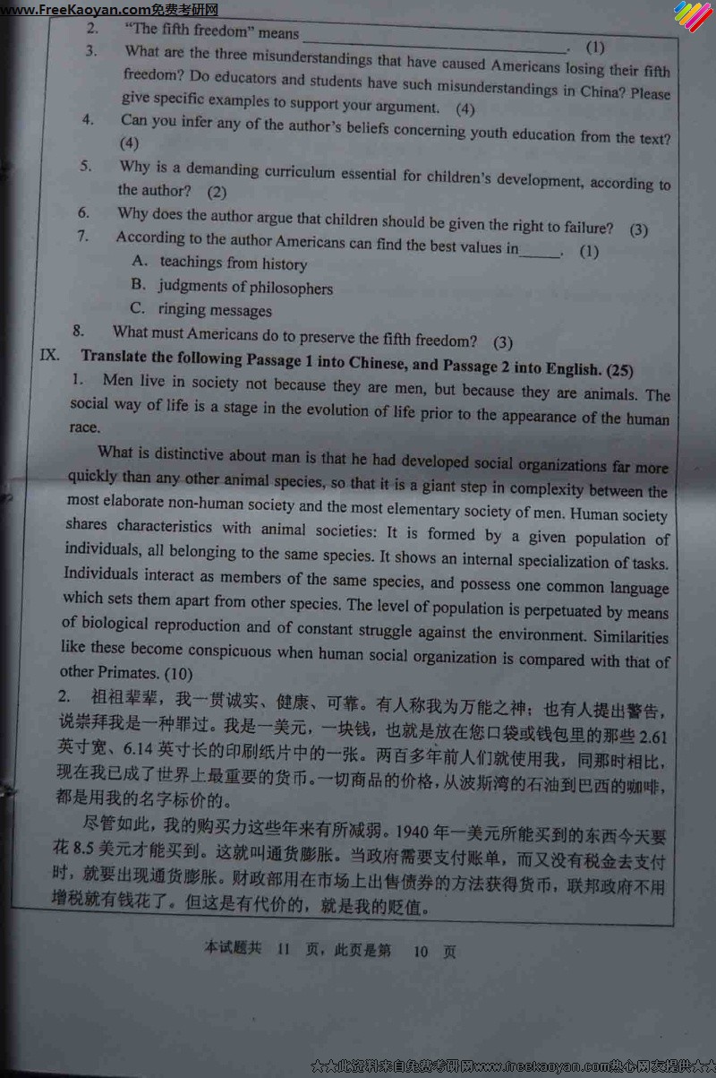 河北大学2007年考研真题-英语语言技能综合(10)