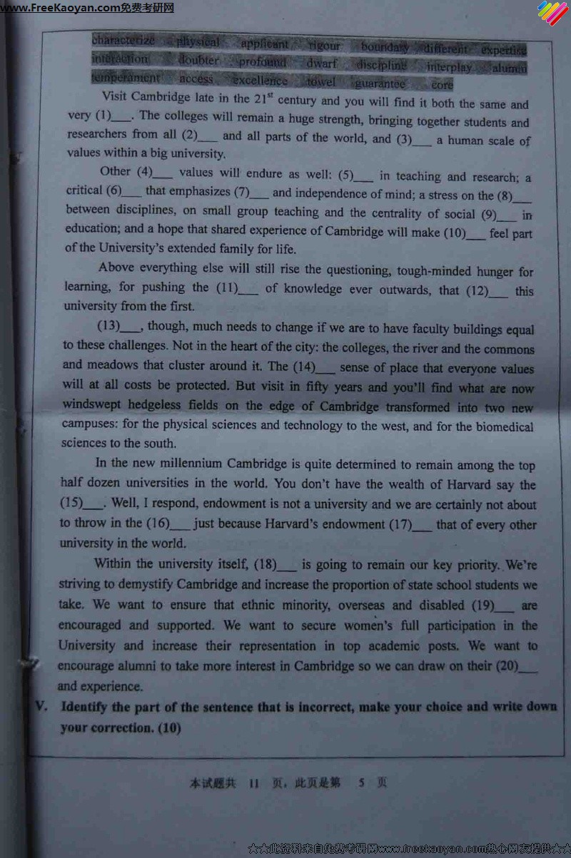 河北大学2007年考研真题-英语语言技能综合(5)