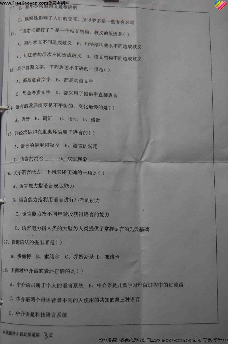 专业课考研经验 本站小编 FreeKaoyan 2018-01-23河北大学2007年考研真题-语言学基础