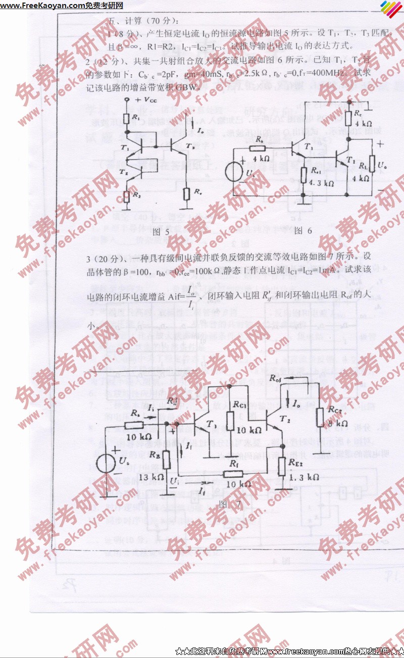 专业课考研经验 本站小编 FreeKaoyan 2018-01-23西南大学2007年考研真题-电子技术