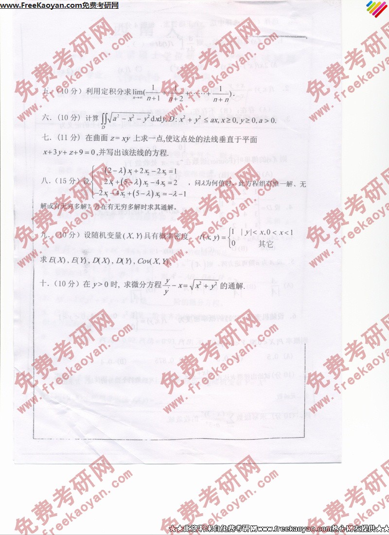西南大学2007年考研真题-数学(一)(3)