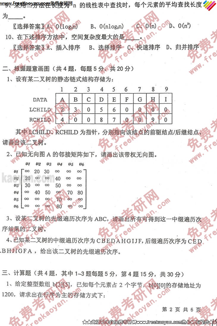 云南大学2003年考研真题-数据结构与数据库技术(2)