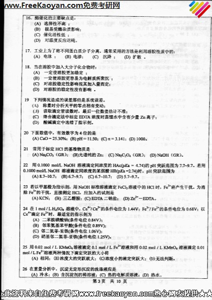 专业课考研经验 本站小编 FreeKaoyan 2018-01-23中山大学2007年考研真题-有机化学