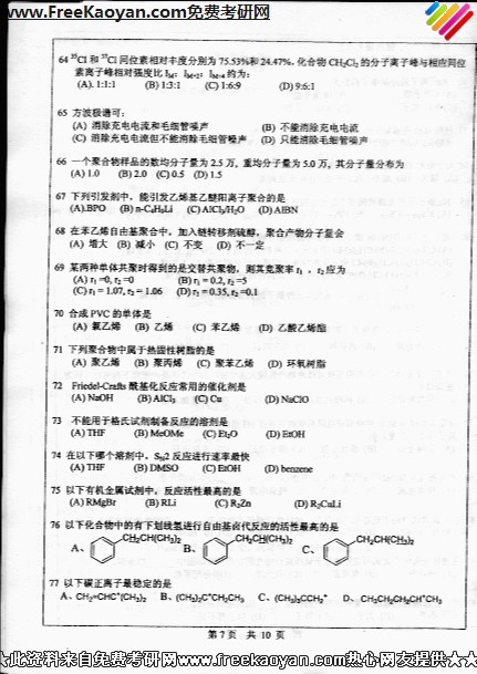 专业课考研经验 本站小编 FreeKaoyan 2018-01-23中山大学2007年考研真题-有机化学