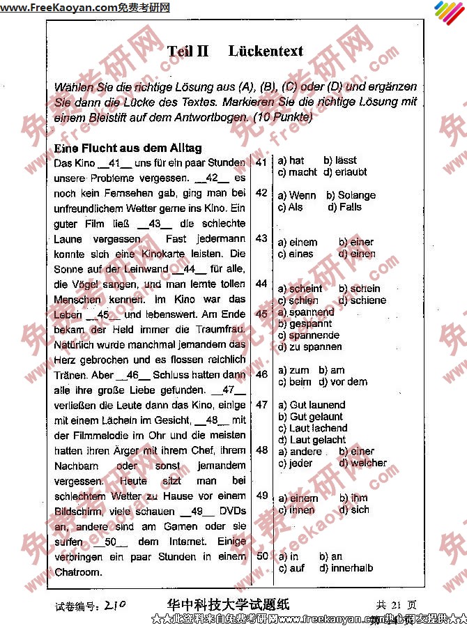 华中科技大学2007年考研真题-德语(14)