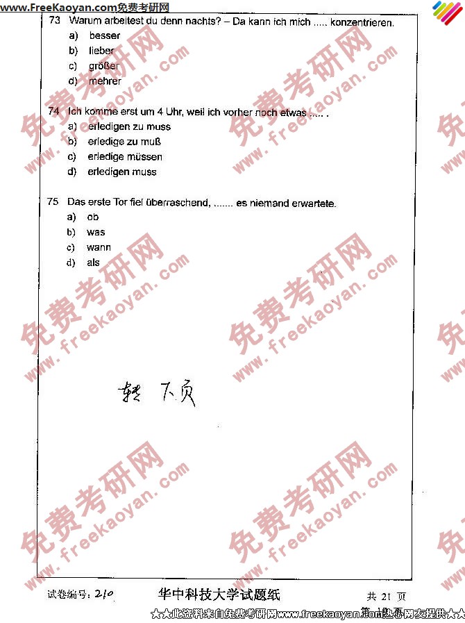 相关话题/华中科技大学 考研真题 德语