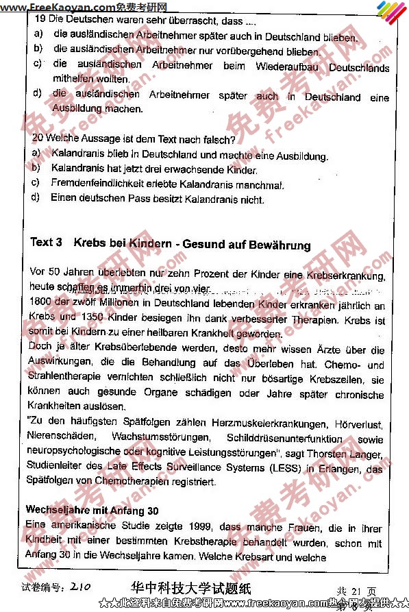 相关话题/华中科技大学 考研真题 德语