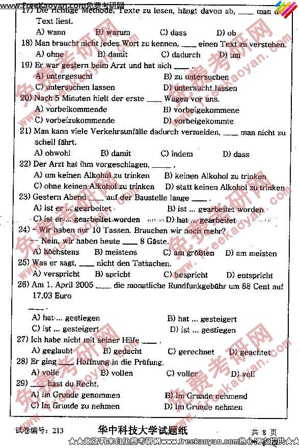相关话题/德语 华中科技大学 考研真题