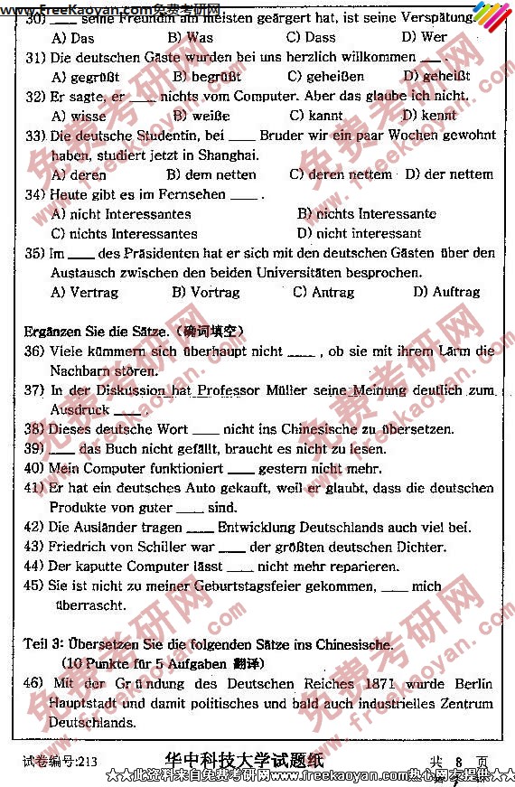 相关话题/德语 华中科技大学 考研真题