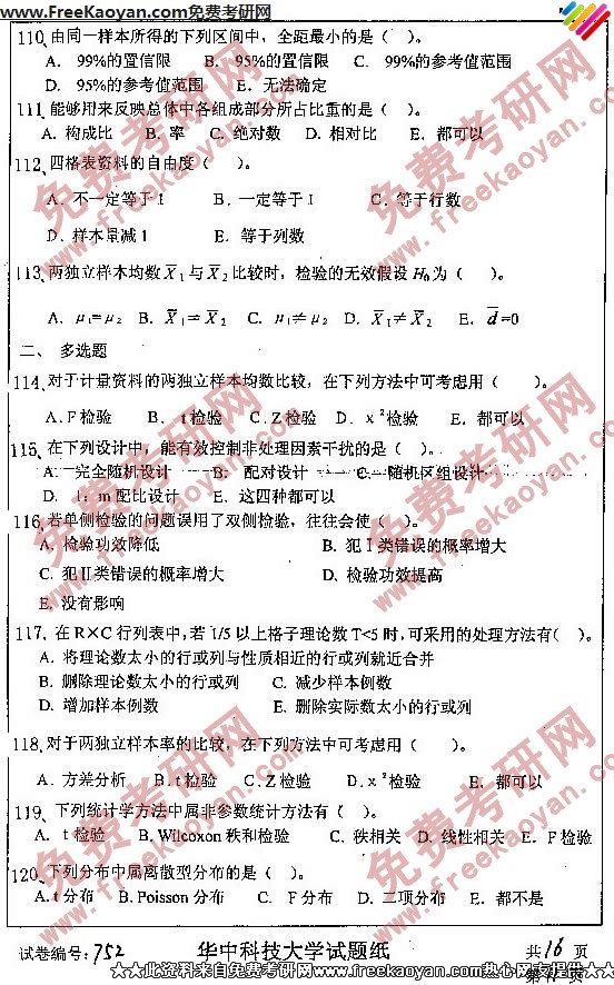 相关话题/考研真题 华中科技大学 卫生综合 公共
